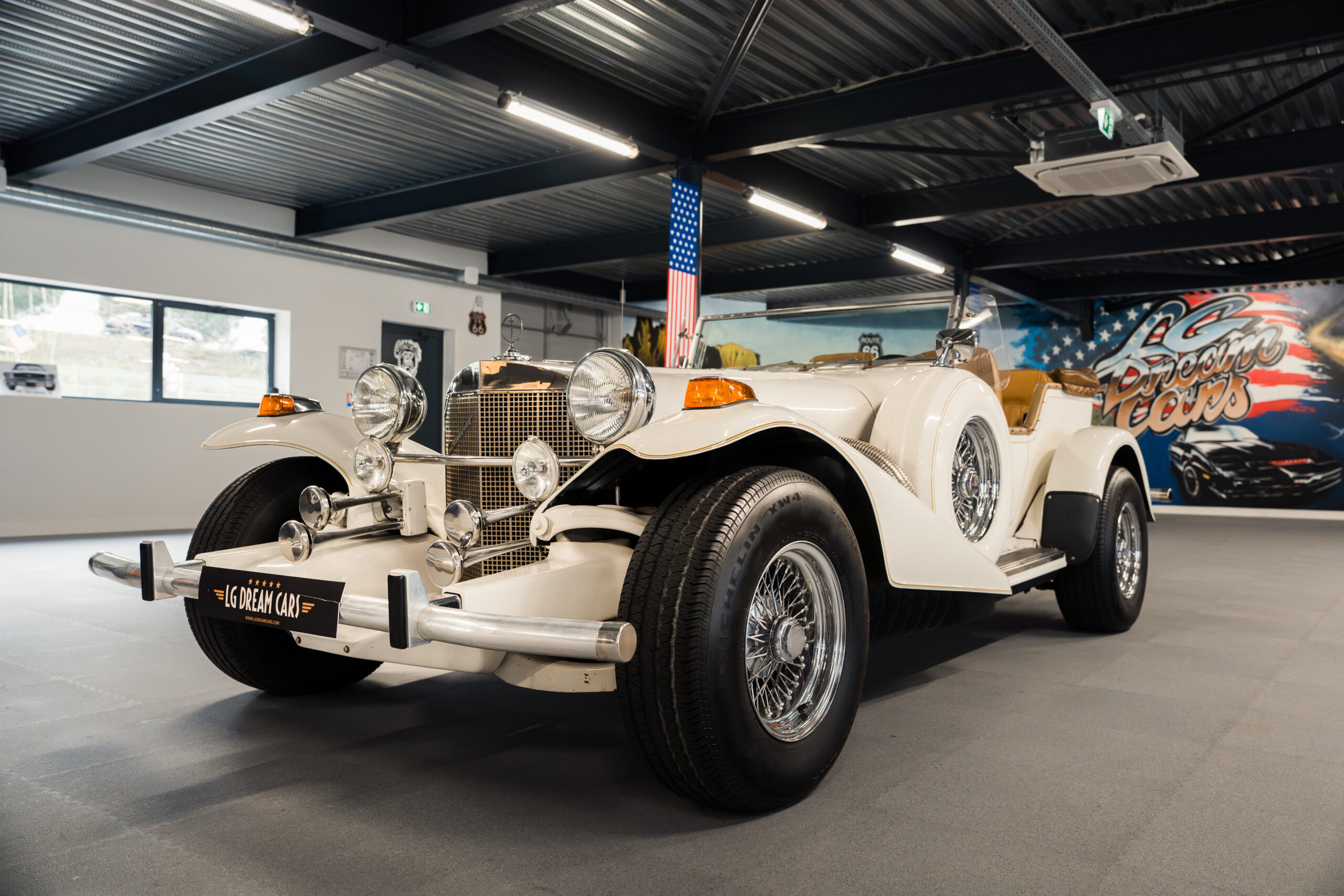 Cette Excalibur Phaeton III V8 7.4L est une pièce maîtresse qui mêle performances impressionnantes et style vintage. Inspirée des designs classiques des années 30, cette voiture mythique est équipée d’un moteur V8 7.4L qui procure une conduite aussi puissante que fluide. Son intérieur spacieux et raffiné complète son allure aristocratique, avec des matériaux haut de gamme et des finitions élégantes.